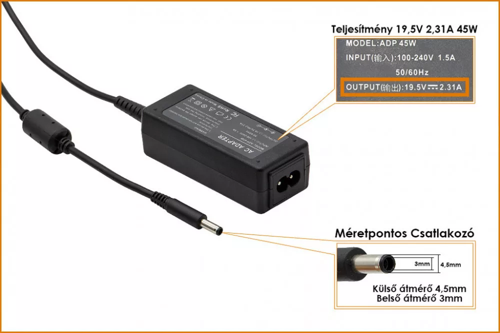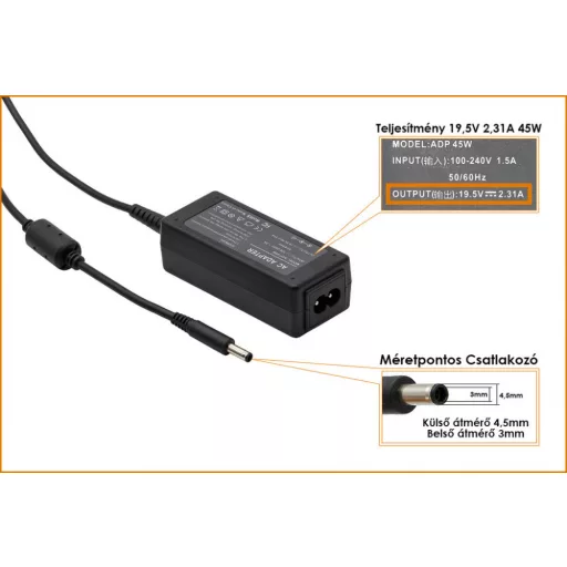 Dell 19.5V 2.31A (45W) 4,5mm x 3mm VCP utángyártott laptop töltő
