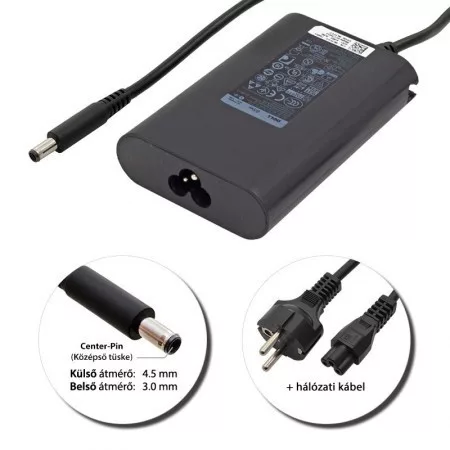 Dell 19.5V 3.34A (65W) gyári új laptop töltő 4,5mmx3mm VCP