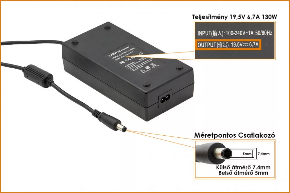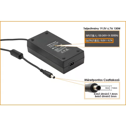 Dell 19.5V 6.7A (130W) 7,4mm x 5mm CP utángyártott laptop töltő