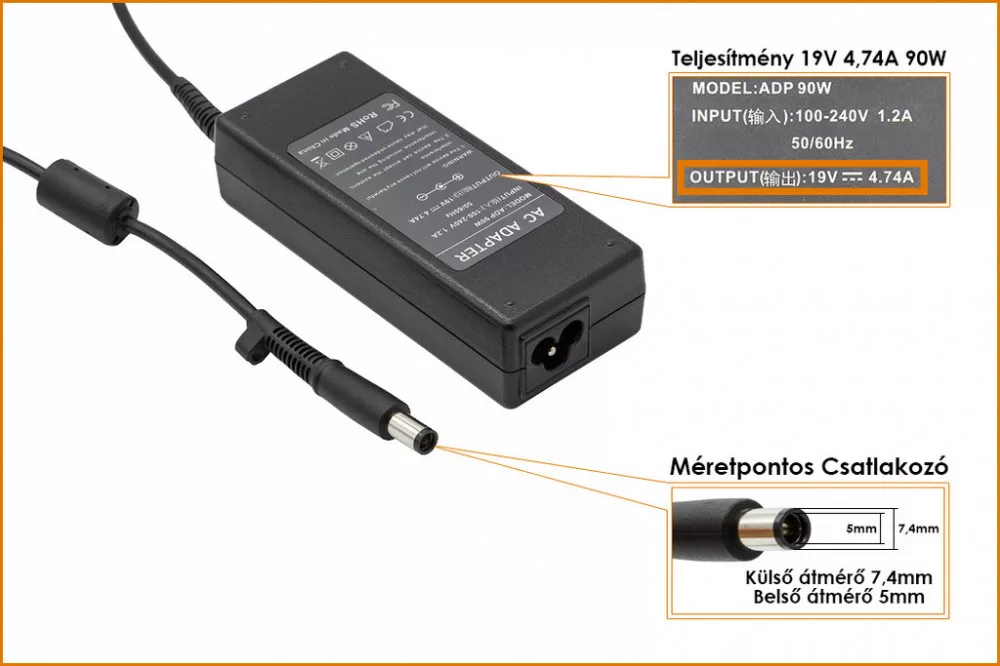 HP 19V 4.74A center-pin (90W) 7,4mm x 5mm CP laptop töltő