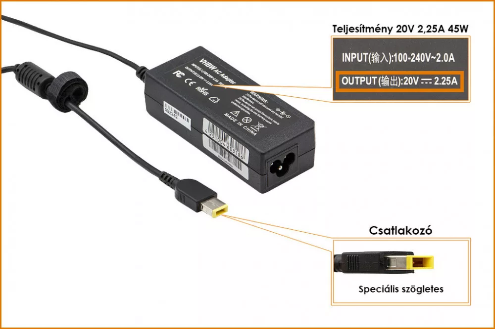 Lenovo 20V 2.25A (45W) speciális sárga téglalap utángyártott laptop töltő