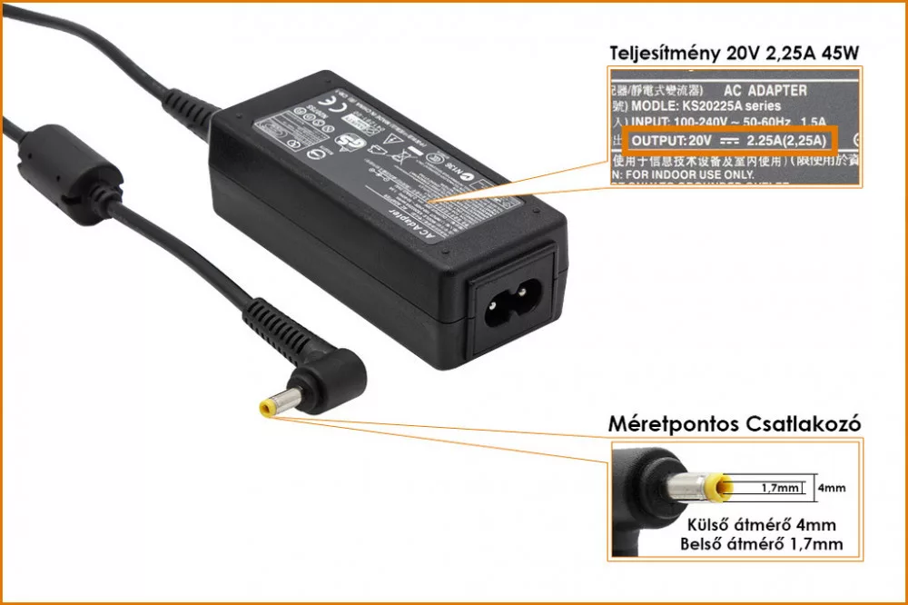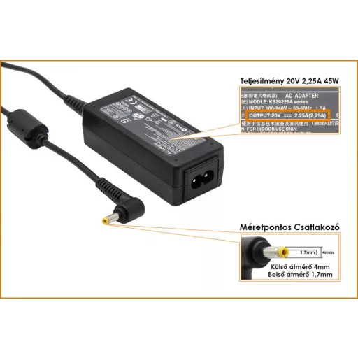 Lenovo 20V 2.25A (45W) utángyártot laptop töltő 4.0mm x 1.7mm