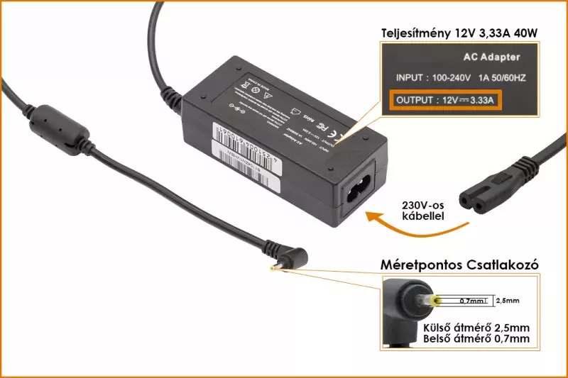 Samsung 12V 3.33A (40W) utángyártott laptop töltő